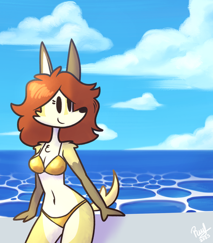 #animalcrossing #anthro #beach #clouds #fanart #furry #ocean #summer #water #wolf #audie #blue_sky #animalcrossingnewhorizons #acnh #audie_animalcrossing