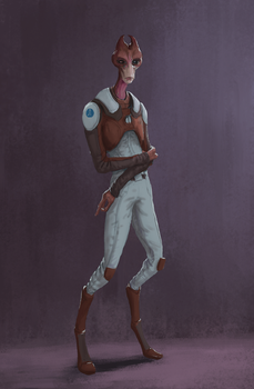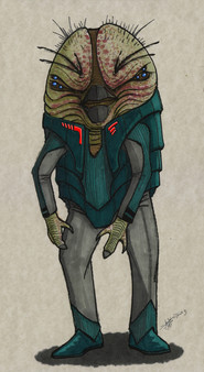 The elcor are best known for being from a high gravity world, very large, very slow, and they talk in monotone like "excited nice to meet you" This is ment to be yorrik from annihilation a lover of the human play Macbeth to point of changing his name hes a old just retired throat and nose doctor who dreams of working in the theater. Alas yorrik I knew the well.