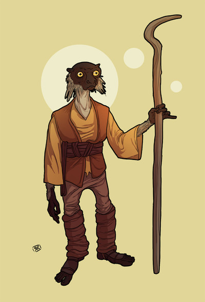Character Notes: Worke was one of the few members of his species to not immediately retreat from the observation of the asari. Though still cautious, he would occasionally approach some of the scientists, especially one who would feed him a strange food bar every now and then in an attempt to gain his trust. They quickly became his favorite, to the point where he began to believe that these strange, blue aliens might be the gods that they worshiped. Over time, he managed to convince a few trichi, though there were many who didn’t share his belief, namely the priestly-class. Some of the priests saw his radical beliefs as a danger to their way of life, believing the asari to be no different than the humans they lived in hiding from. Despite all of this, Worke’s faith wasn’t shaken. He continued going to the asari, careful to show the utmost reverence to them, and even brought some of trichi he’d managed to convince with him. He even tried making his case to the priests when they considered exiling him for blasphemy. However, this trial couldn’t have come at a worse time, as the first battle between the lost human colony and the asari resulted in the death of many trichi. In the aftermath of this, Worke lost many of his supporters and was exiled by the priests. Having nowhere else to go, Worke returned to the asari with an offering of a small mammal-like creature he’d killed for them. It took the scientists awhile to figure out that Worke had been exiled, but once they did, they allowed him a place to stay in their research station. However, Worke took this as proof that he’d gained their favor. This lead to further complications when he killed a rare species of Hibelos that the scientists had captured for further research, believing that it would showcase his devotion to them. After that, Worke was banned from several areas of the station, though the asari tried their best to not make him feel bad about the situation. As time passed, the asari found more tribes of trichi scattered across the planet, many of whom were just as skittish as Worke’s tribe. However, the scientists were able to use Worke as a way to approach them safely. Worke, believing that he was the representative of the gods, was more than happy to get up on his soapbox and preach. Several tribes were far more receptive to his message than his tribe had been, eventually reaching that point of the scientists receiving offerings, aka dead animals, outside their living quarters on a daily basis. They couldn’t complain though; in their mind, a few dead birds and rodents was a small price to pay for studying this fascinating species. When the study was over and the asari departed, Worke continued to preach their greatness, amassing a large army of various tribes in the process. After a few holy wars, this new religion had spread to many more tribes, and is still growing to this day, providing somewhat of a unified culture to the once scattered, tribal species. Even in the present day, where the trichi have spread across the galaxy, mostly due to stowing away on ships, many of their traditions from centuries back remain, with Worke still venerated as a prophet of the asari. Who knows how long it will take them to find out the truth of the matter?
