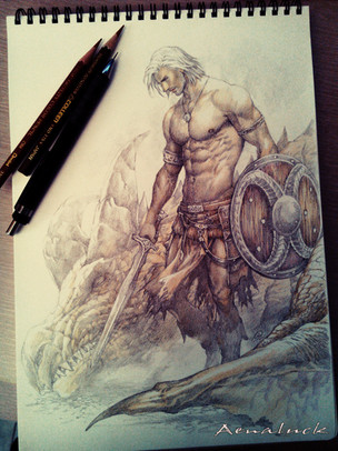 The draggie had no reference (sadly, cause I don't really like the shading on her compared to the warrior).