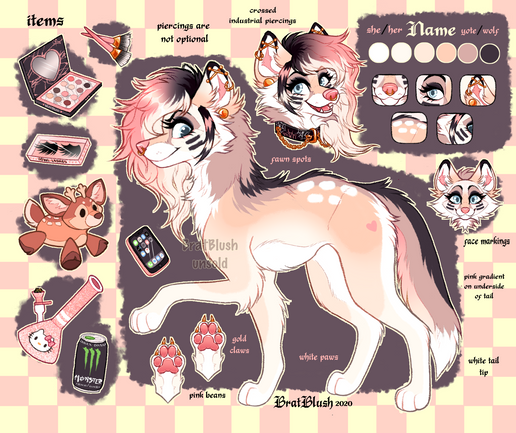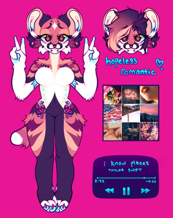 another comfort sona!! I wanted an extremely simple oc that i could draw all my tattoos/tattoos i want on! She can either be drawn plain white with just her heart cheek tattoo (i have the same on irl ;wShe can also be drawn as any species, specifically a mountain lion or a goat!