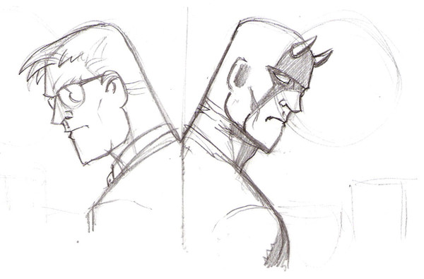 And, as a complete coincidence, I tried to take a different approach when drawing Harvey Dent, and when I was done, I couldn't help but see Aaron Eckart's likeness there. Complete accident. Cool!