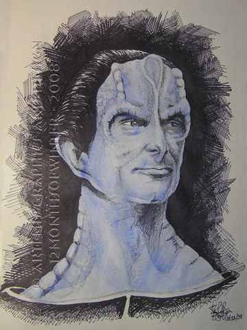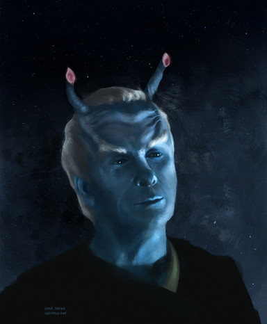 Shran the Andorian from Star Trek: Enterprise, played by the lovely Jeffrey Combs.Pencil + added a bit of blue filter for the mood.
