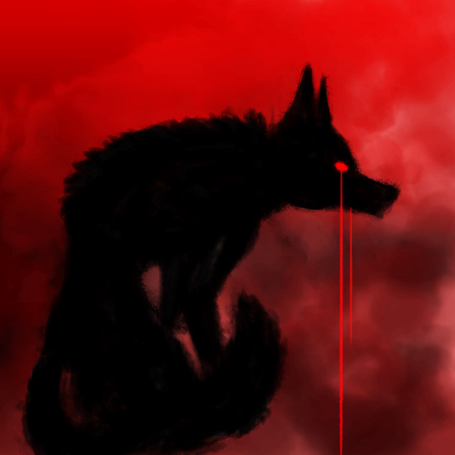 i love the.. gravity? in this piece. with the black-ness dripping out the hole in its face, but the body tilting upwards and the fur on the back spiking right up- it looks amazing.