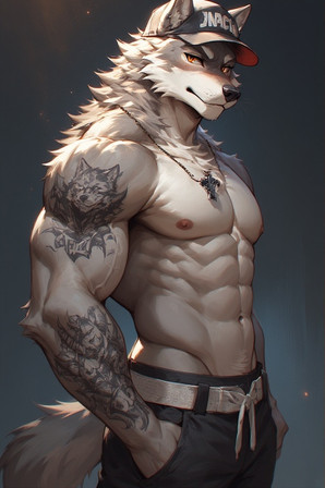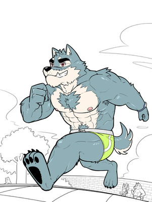#anthro #dog #furry #muscle #wolf #smol #musclegut