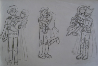 Just a small glimpse into my artistic process.This is my take on DC's Power Girl. I think if she's gonna have huge boobs she should have a round face and be curvy all over!!