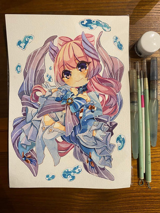#artwork #chibi #chibicommission #commission #drawing #illustration #tradi #traditionalart #watercolor #watercolorpaint #com