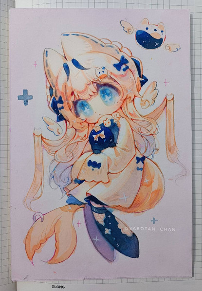#traditionalart #artwork #chibi #chibicommission #commission #drawing #originalcharacter #tradi #watercolor #commissionart
