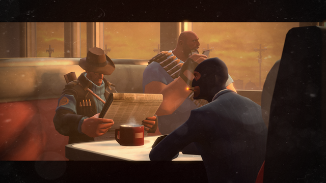 beautiful SFM... judging from the hands I'm guessing Soldier and Pyro are dead. Judging by Archimedes, I'm guessing Medic is still alive.
