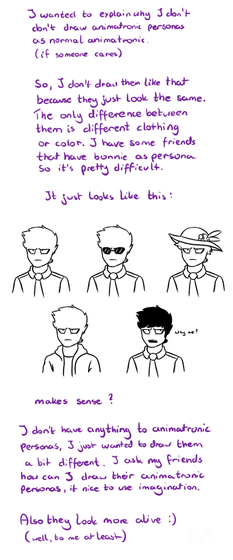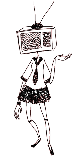 She is caring towards animals, especially giraffes. Around people she is somewhat awkward as she's still in the process of learning social conventions. She's very outgoing and friendly but naive and easily manipulated. Especially by ads. She has become a victim of consumerism and really likes buying new stuff. Like clothes. She has a bunch of clothes. So many clothes. Girly girly clothes. FASHION HAS CONSUMED HER. REALLY LIKES CLOTHES AND WHATEVER IS "THE LATEST THING." She is a little too obsessed with media also her head is a TV so it makes it harder to resist temptation because HER BRAIN IS LITERALLY RECEIVING THE MEDIA ALWAYS. And the shopping channel. Yeah. Shopping.