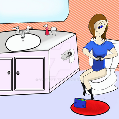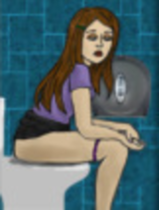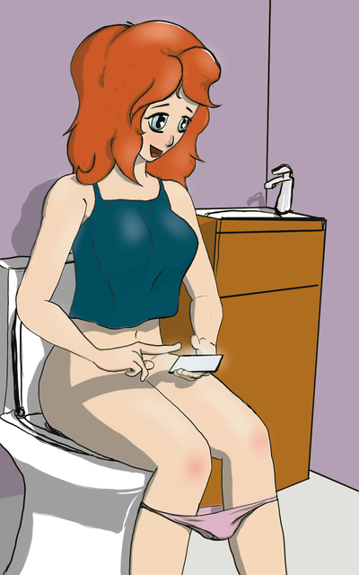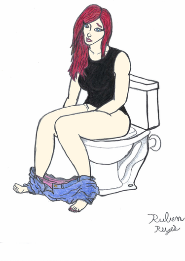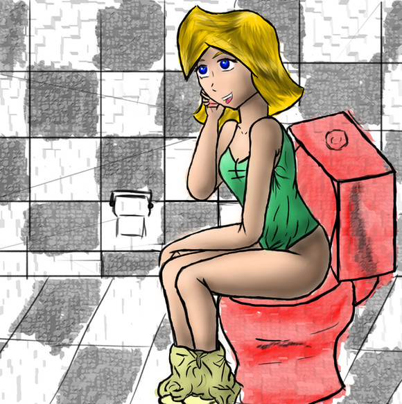 A cute girl having a bit of blockage on the toilet. Older drawing, not very great line controlRelated content
