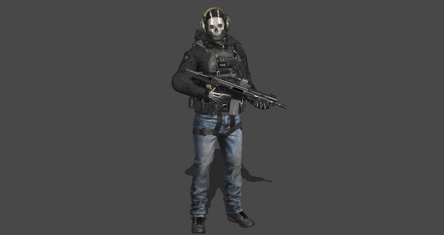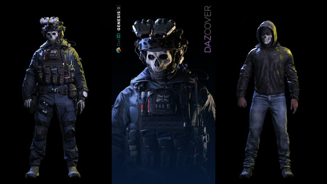Custom kitbash of Ghost in his casual attire, as shown in the final cutscene of the MWII Campaign.All assets are from CoD MWII.