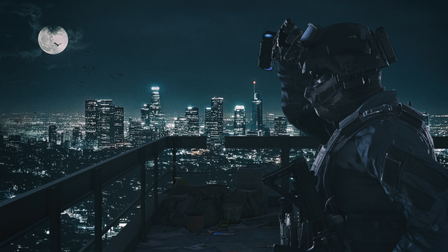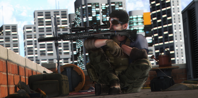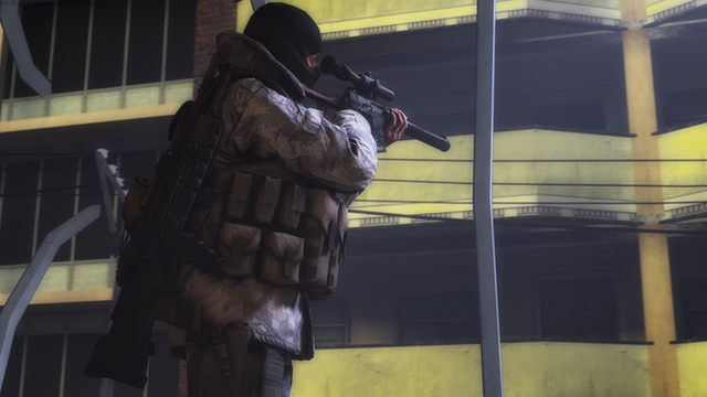 Ghost in a sniping position on a building, signaling where a target is.Rendered in Blender.