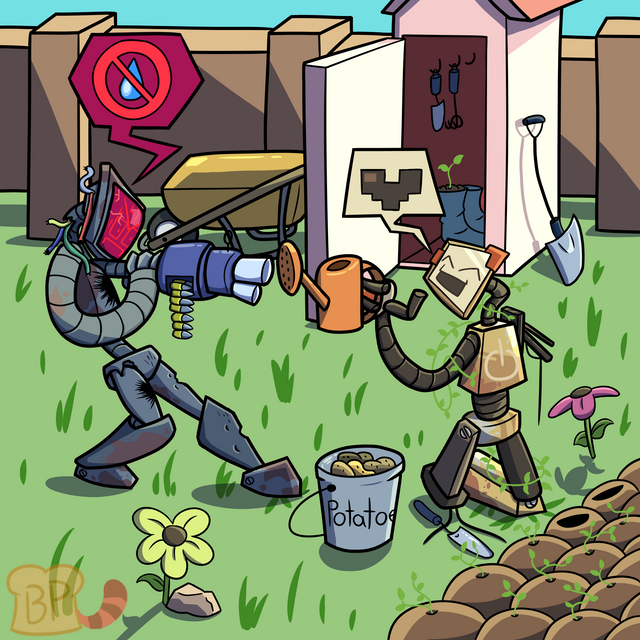 A talented user by the name of Framed51 drew a character of his wielding a soda-themed shotgun. Mi amiga, NinAcTi0N , Also followed suite. Naturally, I wanted to hop onto the fizz fight express myself.At first, I opted to give Baguette a soda themed minigun. However, I then decided to land on a weapon designed around a flamethrower instead. It is appropriately nicknamed, "Me-mento Mori."