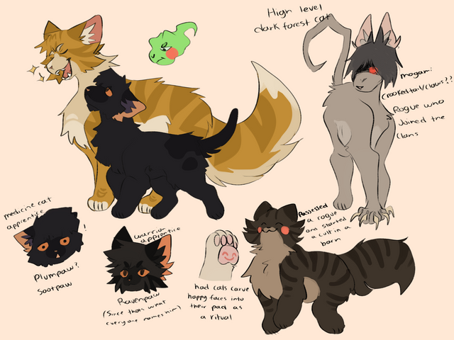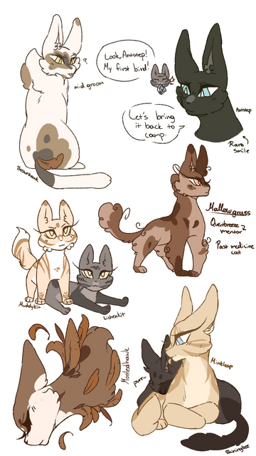 posting this since i've been dead for a lot longer then I'd like to bea compilation of like, half my warrior ocs (they all exist in the same timeline) below are names and abridged descriptions