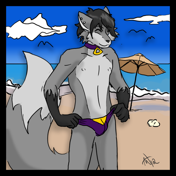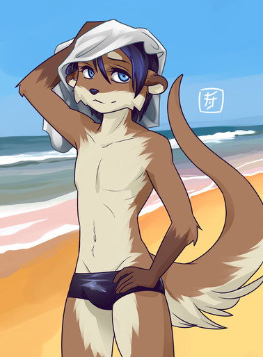 #albine #anthro #ari #badge #beach #femboy #furry #male #skunk #thong
