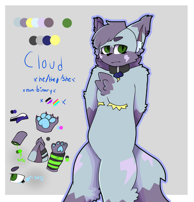Name: Klaud Von Nyxyn (Known as Cloud, by his friends) Species: Arctic Fox, with Jackal and Marble mix