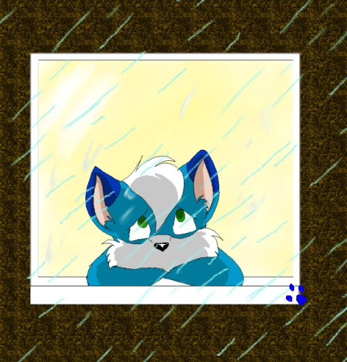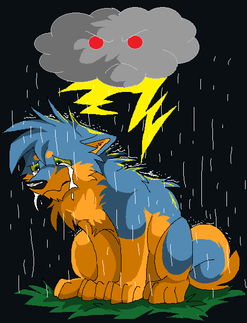It kinda helps to draw your feelings into the paper, doesn't it? I used to do that alot before. Poor Spunky looks so wet and sad. Nice job with doing the water and the raining. n_n Hope you'll get better.