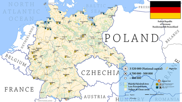 2. It is an alternative modern day Germany? Stettin and KΓΆnigsberg having a population exceeding 500.000 would need some immigration considering their pre-war population, war losses and the economic toll after the war. Even Leipzig and Dresden haven't reached their pre-war size again.