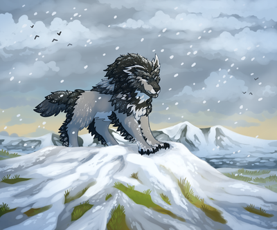 #warrior #canine #wolves #digitalart #epic #originalcharacter #digitalpainting #animal #dog #blue #claws #fangs #glaive #hellhound #ice #magic #mountains #snow #spear #white
