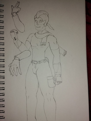 Aroan is the sniper and Korona's (haotic girl) older brother. He used to want to be a marine before Saibhre swept them up in her trail. He's cold and skeptical, but kind of an insecure softie once you know him. He's bi but he's never really realized it.