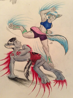 Felix and an un named fishbowl girl that are both unfinished. Mediums are water color and pen and ink.There's a Taekwondo tourney tomorrow and I am so very not ready rip me
