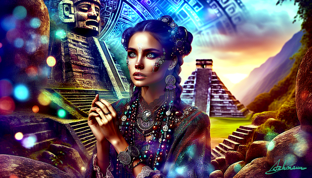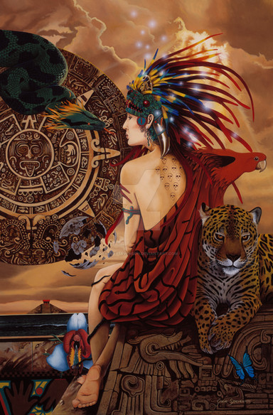 All of the images used were stock photos. Finding an aztec model was quite difficult to find until I found a gorgeous stock photo of Asvision , the stock was downloaded from here: [link] The golden coin in the top right was meant to represent the Aztec Calendar which signified the end of the world.