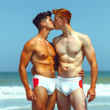 #abs #africanamerican #barechested #beard #blacksocks #blond #boxers #embrace #lake #male #muscular #nordic #shore #socks #stubble #veins #whitesocks #veinymuscles #veinsinmuscles