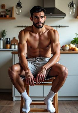 #digitalart #photography #body #portrait #abs #barechested #beard #chair #hairy #hairychest #hairylegs #kitchen #male #muscular #pensive #shorts #socks #stubble #tallsocks #veins #whitesocks #hairyarms #veinymuscles #veinsinmuscles