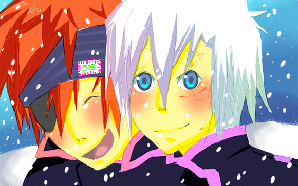 I love the looks on their faces and there's just something about the background that I seriously dig. VERY CUTE, DEAR~! <333