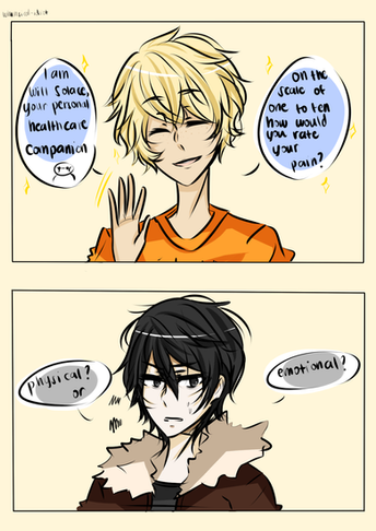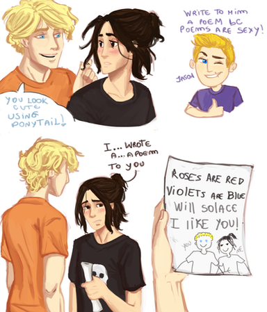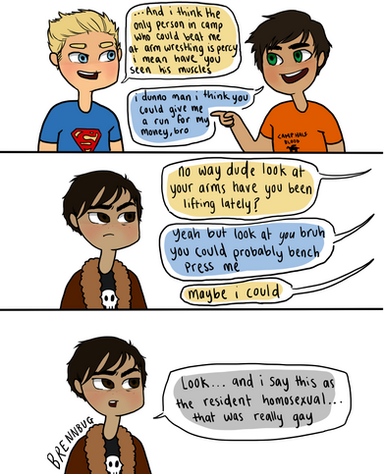 Oh man, I can't even-HAAAAAHhahaha. My insides are on fire. That last line and the slip Nico did. HA! I - I ...... *deep sigh* I can probably see this as a funny oneshot Riordan himself would do.