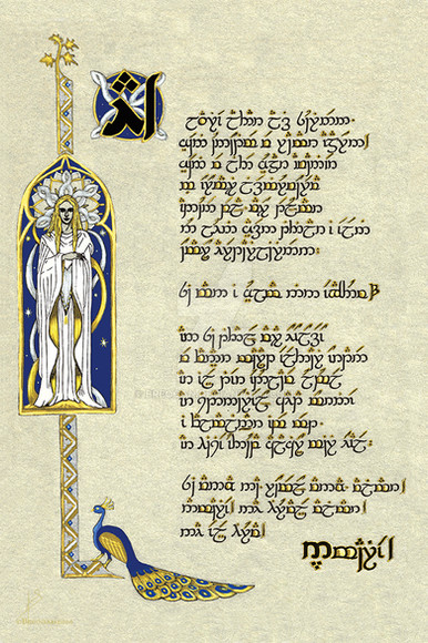 This is awesome. The attention to detail and the execution puts the old illuminations to shame. I particularly like the way the text is easily taken to be Latin-based, unlike the Peterborough Chronicles or Ellesmere's Canterbury Tales. Well done, and a tribute to a lost art!