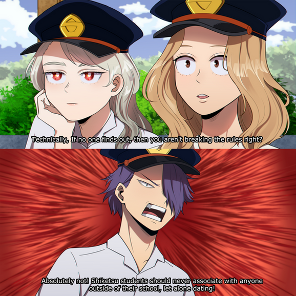 License exams|| Meeting Pt 1.During that exam, Maki dragged Shin from the rest of their classmates because she had seen a nearby food store and she wanted to hace him but her something before that. But an unexpected arrival manages to capture the attention of both.