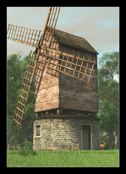 #3d #building #medieval #render #stock #windmill #mill