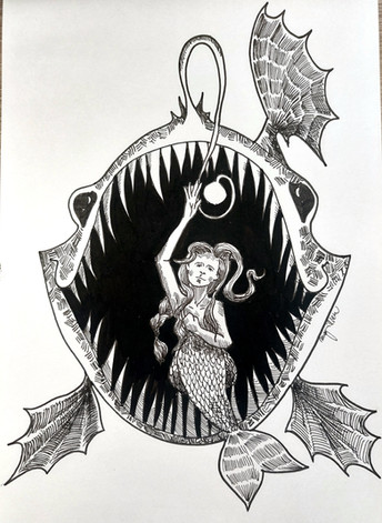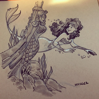 That Mermaid has a big butt perfect for a snack, someone else might be cleaning that sharks teeth before long. Haha. Cool drawing.