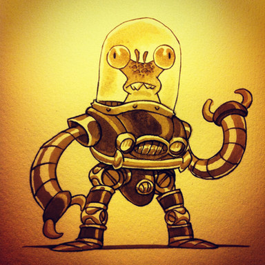 #inktober day 1: “divided” D3-LI5H has been serving the galaxy’s best #pumpkinpie since 8547. Over 3.14 million slices served! #inkbotsRelated content