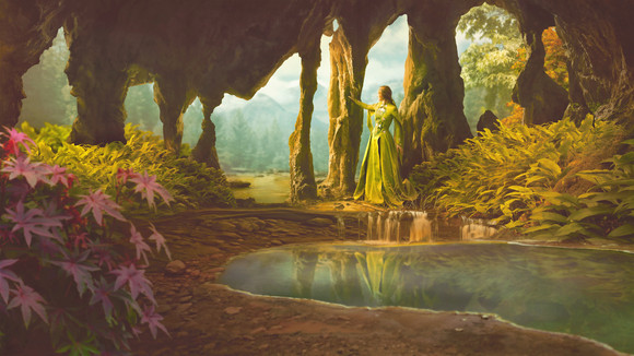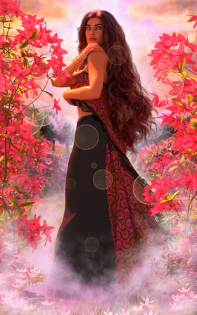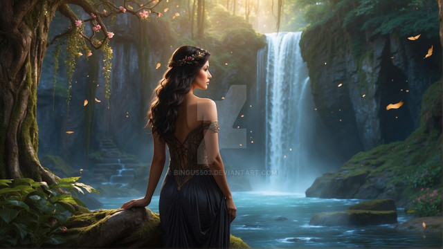 #fantasyart #wallpaper #jungle #waterfall #digitalart #3d #forest #render #beauty #daz #dazstudio #flowers #nature #plants #pond #trees #woman