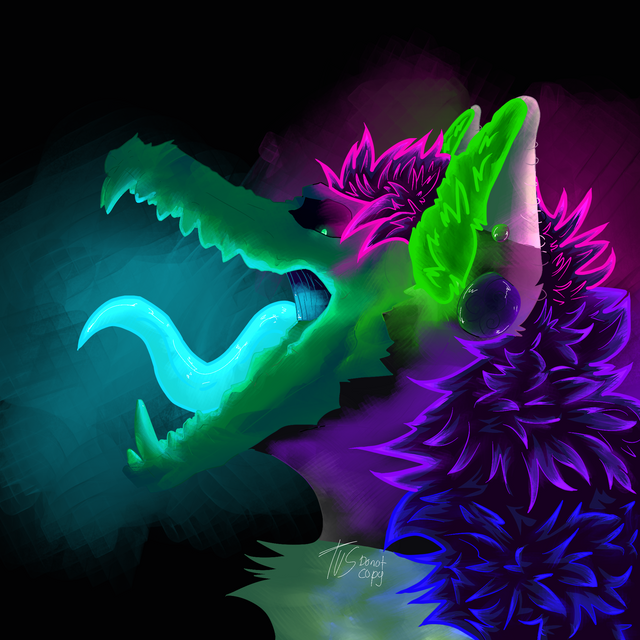 This was a gift for Paradoxxpalms on Instagram of their character Rez Raptor. Drawn in Procreate for iPad, approximately 3 hours. 🌸