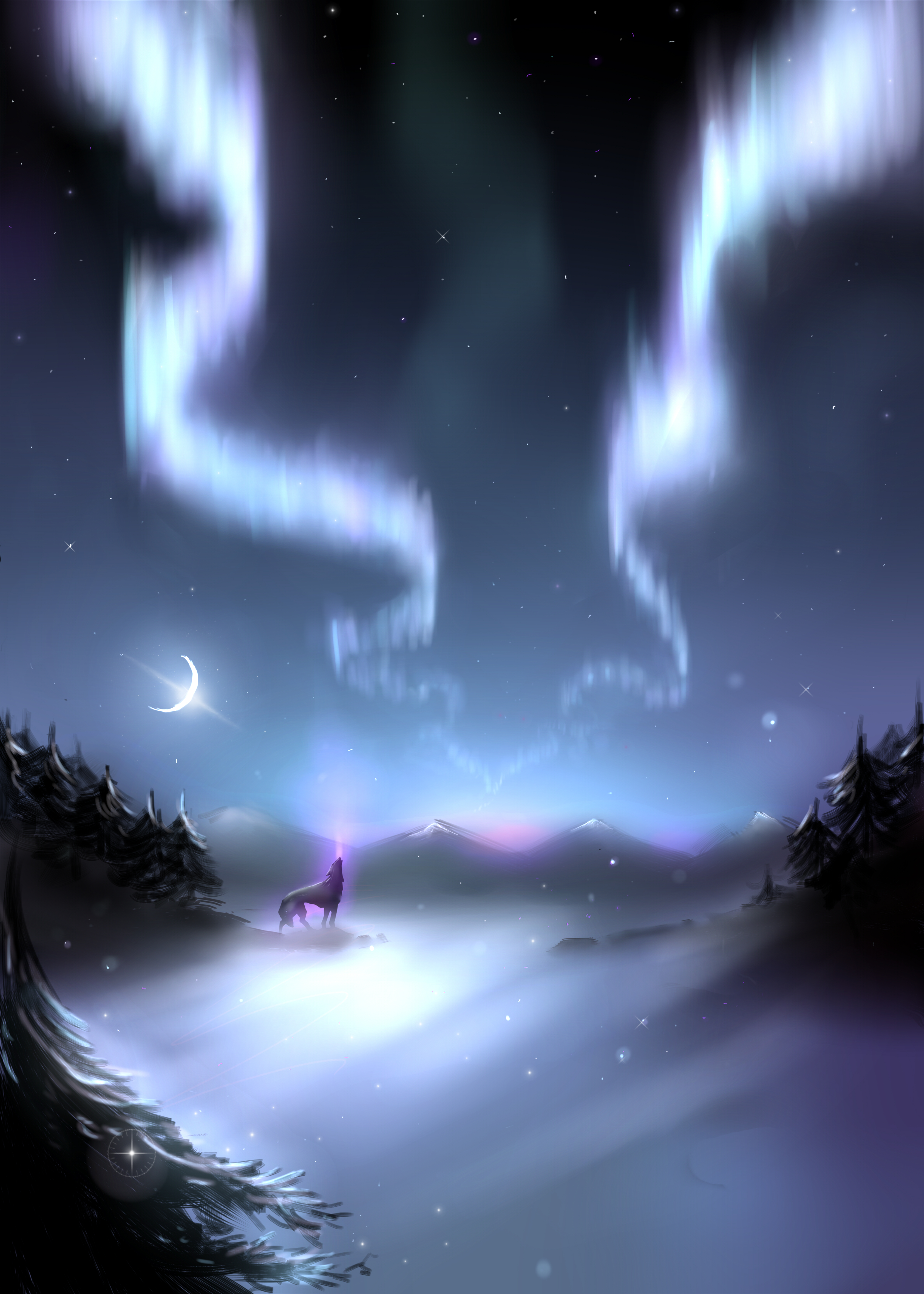 #forest #auroraborealis #digitalart #digitalartwork #digitaldrawing #digitalillustration #digitalpainting #fireflies #forestfantasy #forestlandscape #glow #magic #moonlight #moonnight #nightscape #northernlights #skyscape #stars #woods