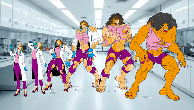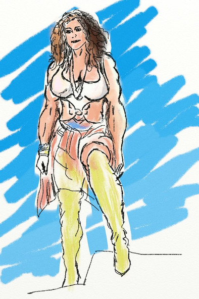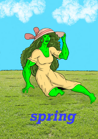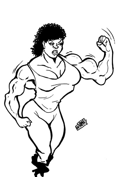 A woman is transformed into a BFW as opposed to a BBW. She a Big F***in' Woman!From 199? Hand colored by me.