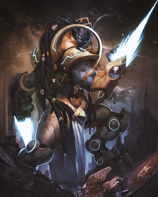 Nice! I love the various textures on the armor, from the shiny reflections off the shoulder and chest plates to the dulled, worn-looking metal on the toes. Also, you've got a very original, almost organic-looking design.
