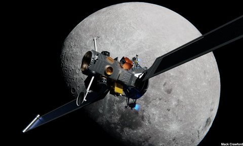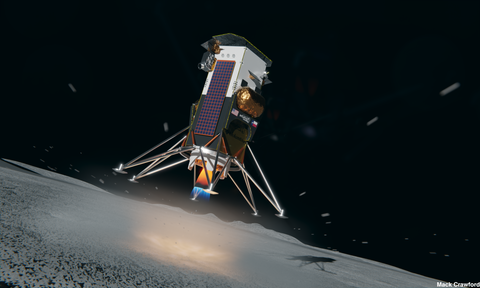 Just a generic small-class lander, of the sort that might be flown under CLPS. Mostly just a test scene while I work on lunar surface environments some more.Related content