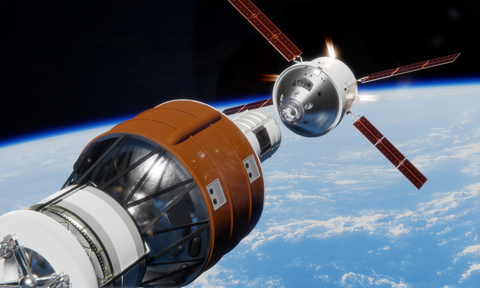 ESA's Space Rider, propelled by an AVUM+-derived service module, conducts a routine orbital maneuver in LEO