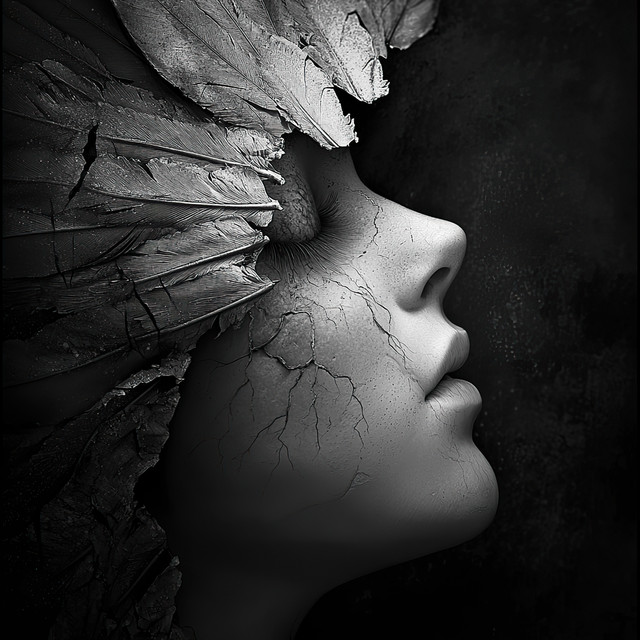 Combining an old artwork with image of a woman face, and a waterfall- with digital editing. I love Salvador Dali. This piece reminded me a little of surrealism. Black and white version of this piece.