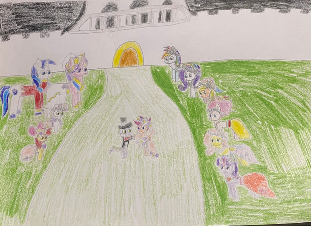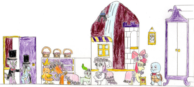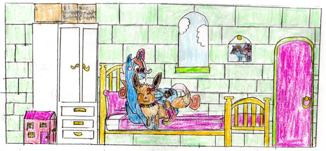 greetings everyone here is the Healer Pokemon picture I drew for my friend www.deviantart.com/joelleart13here we have her character Princess Cupid www.deviantart.com/joelleart13… with her Comfey Petal and I imagine here Princess Cupid just had a burst of inspiration in the middle of the night and is drawing up a chart of ponies she wants to romantically ship with others and advising her is Petal (and even though Petal is speaking pokemon I imagine Princess Cupid can understand her), and in the background we see Princess Cupid's husband Jefferson Goodwill is sleeping and unaware of his wife's late night antics and on the other side we see Mary www.deviantart.com/joelleart13… is walking into the room I imagine she's just scratched her paw and was going to get it healed when she sees the chart and notices Princess Cupid wants to ship her daughter Nightshade with Doug (even Cupid's kids aren't immune to their mother's antics)