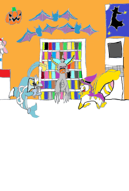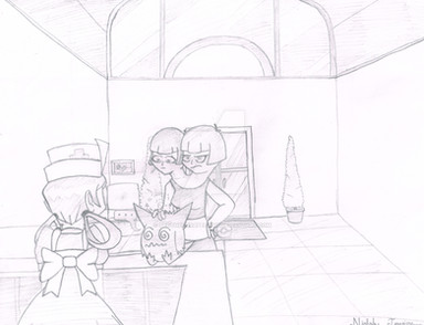 in the background we have Gridvolt the Joltik, Banafrit the Misdreavus and their pet owner www.deviantart.com/the-bard-of… since I owed The-Bard-of-Shale a picture of Pinwheel in her alt mode I decided I'd kill two birds with one stone and draw her here (basically I imagine she and the three pokemon went out to run an errand and Empress got hurt so Pinwheel had to shift to her witch mode in order to help Empress to the clinic and in the background is an exam room where the nurses would treat injuries and Dead Poppy www.deviantart.com/the-bard-of… is just bringing in some more medical supplies I can imagine she and Kimberly saying;