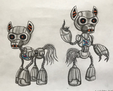 Personality; shared; all three are geniuses when it comes to radio waves, engineering and modifying, they love their job as their series helps others most of the time and they’re glad their making a difference, the three however don’t like when a dangerous situation occurs and if they are forced to witness an eviction of someone who actually was having a hard time, they like to be prepared and have installed several modifications in their mechanical legs to help if needed. Air Wave; Air Wave is a very focused pony often focusing in on most things he’s working on with ease, he does like to make homemade pizzas and watch tennis in his free time, despite being a terrible tennis player he is passionate about watching the sport, he is very close to his siblings and can almost read his siblings minds. Clean Feed; Clean Feed is a very neat and organized pony, she hates disorganization with a passion and when she gets angry she usually cleans and organizes with a passion to get her emotions out, she does love to nap in her free time and can get cranky if someone interrupts her for no good reason (she is reasonable if the reason for waking her up is reasonable) she loves to rock climb but hates indoor rock climbing and prefers to rock climb in nature and she is very close to her siblings and can almost read their minds. Outside Broadcast; he loves to solve puzzles and riddles and sometimes obsesses about a puzzle if he can’t figure out how to solve it, he likes to compete in fencing contests in his free time and despises when his opponents cheat, he loves to read funny stories but if they don’t live up to his expectations he disposes of them (responsibly) since their parents were bakers he loves to bake muffins and always makes them very meticulously, he likes to travel and is very close to his two siblings and can almost read their minds.