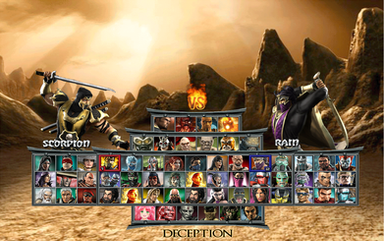 Characters: Quan Chi, Forrest Fox, Havik, Sektor, Cyrax, Reiko, Kabal, Kira, Kung Jin, Johnny Cage, Cassie Cage, Stryker,Β Daegon, Liu Kang, Kitana, Sub Zero, Scorpion, Scorpina, Sasori, Johnny, Cassie, Stryker, Female Nightwolf, Jacqui, Jade, Kabal, Kira, Kung Jin, Li Mei, Kai, Sindel, Fujin, Kung Lao, Ashrah, Kenshi, Takeda, Smoke, Shang Tsung, Tanya, Kollector Final Boss: Dark Kahn, DLC:Related content