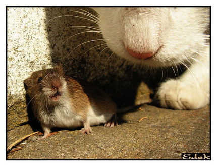 is the mouse a dentist?? at first when i saw the thumbnail that the bigger one was a BIG rat...must of been those big kitty ears!!