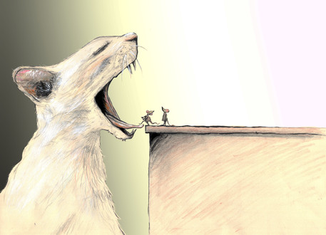 Maybe the rat is searching for old friends between the cat's teeth!